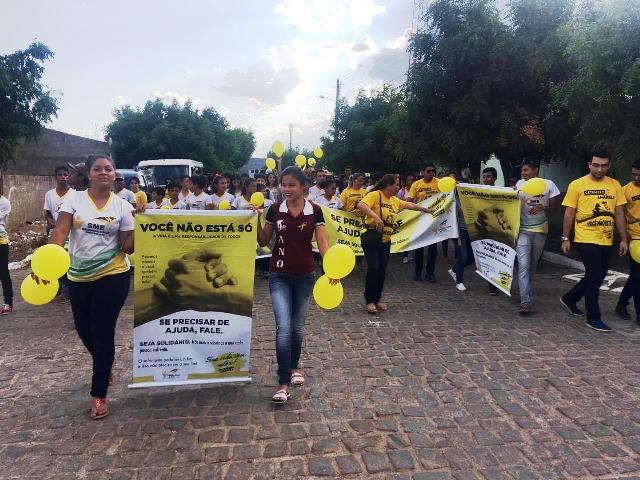 Uma caminhada foi realizada pelas ruas da cidade com a participação de autoridades municipais, alunos e a população em geral. Com faixas e balões nas mãos, os participantes reforçaram a mensagem da campanha que diz: “Você não está só: Se precisar de ajuda, fale!”.